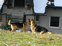 Nero really loves snow. He thinks that snow is even better than toys. Yesterday we went to a walk and met his also german shepherd girlfriend (the right one, on the left picture) :) She was off the leash at her house, so she came to say hello tu us. Nero really likes her, but he is also guarding his ball from her. No love is bigger, than his love to toys.